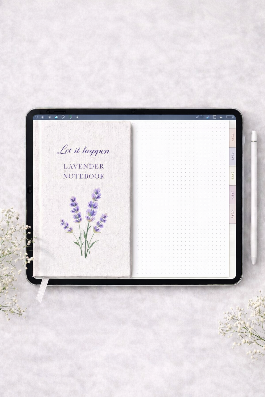 The Lavender Digital Notebook – Dotted Pages is a soft and gentle digital notebook inspired by lavender flowers. It includes dotted pages that are perfect for planning, bullet journaling, and creative layouts.