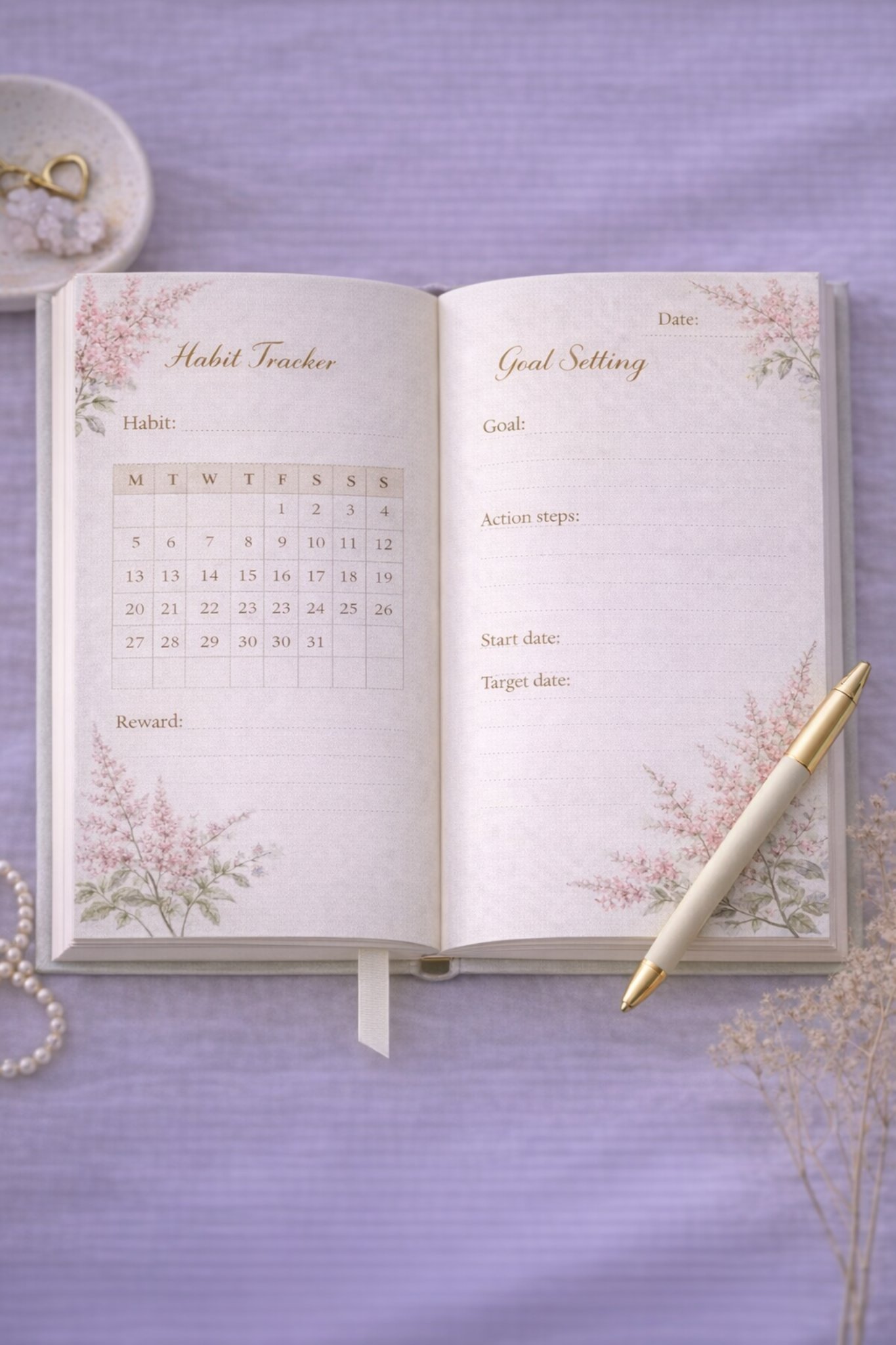 Available in White and Pink, and in two formats — Habit Tracker Journal and Goal Journal — each edition supports a different aspect of your self‑improvement routine. Whether you want to build daily habits or set meaningful long‑term goals, these journals bring clarity, structure, and elegance to your planning.