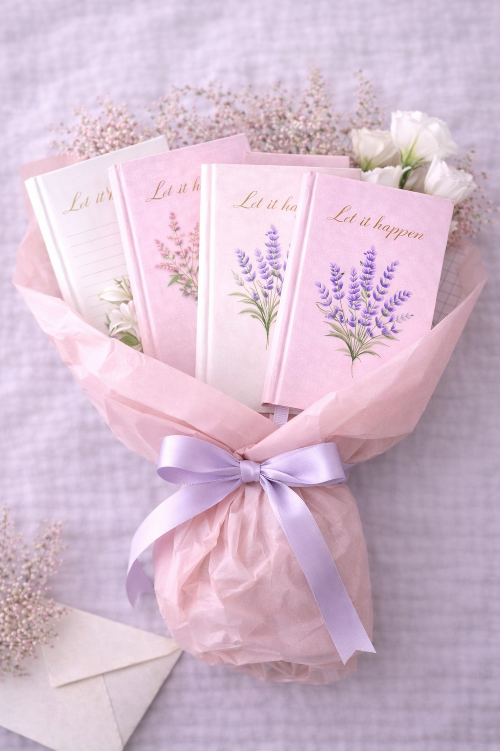 The Notebooks Bouquet is a curated set of four floral notebooks from different collections. Each notebook has a soft and aesthetic design inspired by gentle flowers.